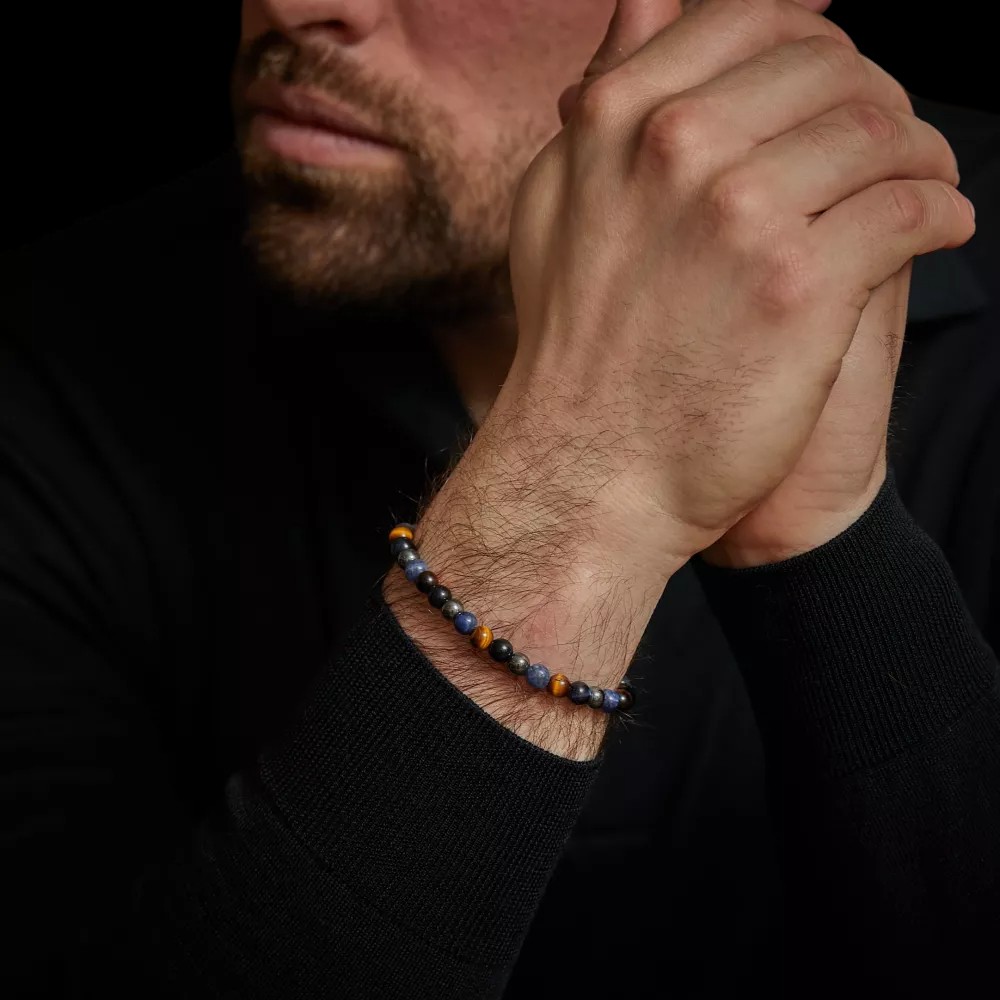Rebel & Rose narukvica Blue Rain Vintage 6mm Vintage stil u profinjenom izdanju. “Blue Rain Vintage 6mm” donosi istu moćnu kombinaciju Sodalita, Tigrovog oka (plavog i žutog) i Hematita kao i veći model, ali u diskretnijim perlama od 6 mm. Kopča od čelika s ručno nanesenom patinom osigurava onaj prepoznatljivi Rebel & Rose karakter. Idealna za slojevito nošenje uz sat ili kožne narukvice.