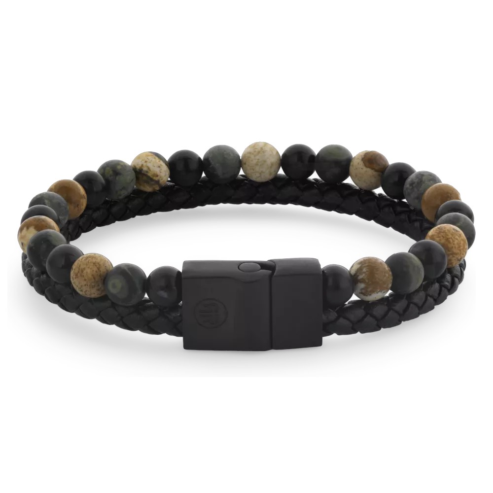 Rebel & Rose narukvica Full Metal Combo 12mm Autumn Storm Zašto birati između kože i perli kada možete imati oboje? “Autumn Storm” je moćna hibridna narukvica ukupne širine 12 mm koja spaja robusnu crnu pletenu kožu s prirodnim tonovima Riolita, kamena Krizanteme i Crnog Ahata. Posebnost ovog modela je inovativna PSR (Push-Slide-Release) kopča od crnog čelika – mehanički sustav zaključavanja bez magneta koji osigurava vrhunsku sigurnost i industrijski stil.