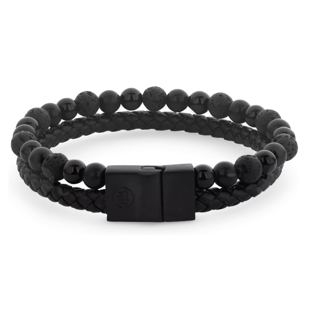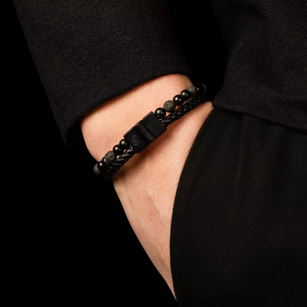 Rebel & Rose narukvica Full Metal Combo 12mm Black Rocks Definicija tamne elegancije. “Black Rocks” je moćna hibridna narukvica koja u potpunosti prihvaća crnu boju, ali se igra kontrastima. Spaja mat teksturu vulkanske lave sa sjajem crnog ahata i oniksa te robusnom pletenom kožom. Osigurana je inovativnom PSR kopčom od crnog čelika, stvarajući neuništiv i sofisticiran modni dodatak za svakog muškarca.