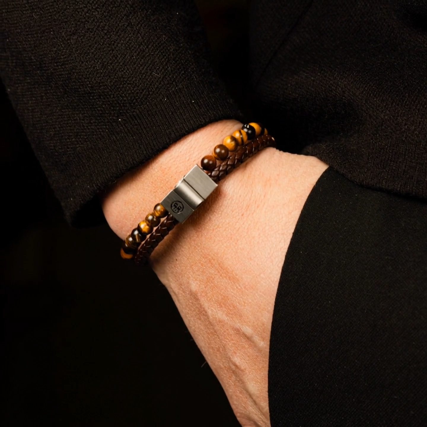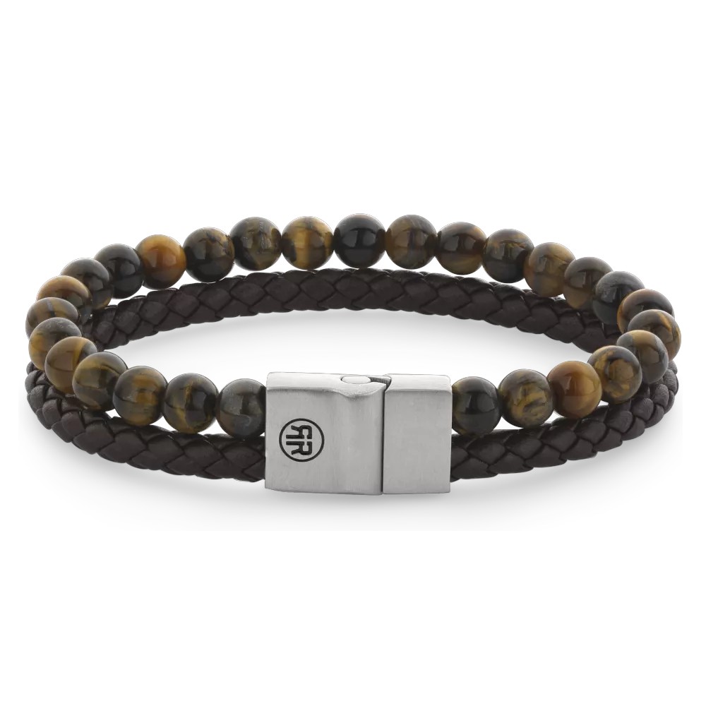 Rebel & Rose narukvica Full Metal Combo 12mm Tiger Lily Osjetite moć prirode uz “Tiger Lily”. Ova impresivna hibridna narukvica (ukupne širine 12 mm) spaja bogatu teksturu smeđe pletene kože s hipnotizirajućim sjajem perli žutog tigrovog oka. Cjelinu povezuje masivna PSR kopča od nehrđajućeg čelika u srebrnoj boji – inovativni mehanizam bez magneta koji jamči sigurnost i moderan industrijski izgled.