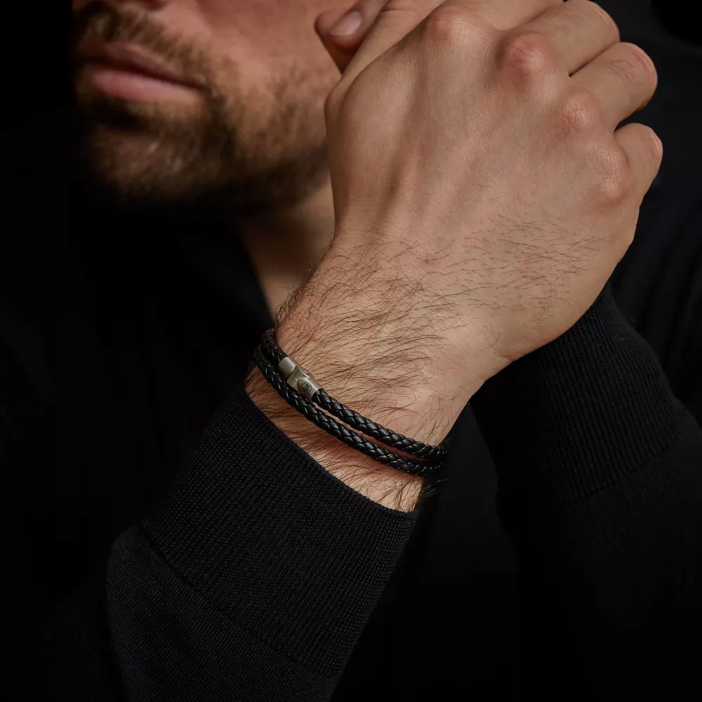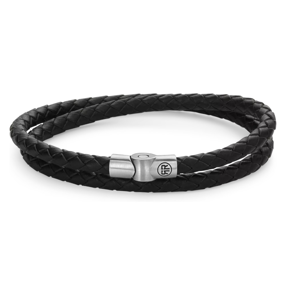 Rebel & Rose narukvica Full Metal Double Round Black Jedna narukvica, dvostruki efekt. Model “Full Metal Double Round Black” izrađen je od vrhunske crne pletene kože koja se dvaput omata oko vašeg zapešća, stvarajući instant izgled slojevitosti (“stacked look”). Osigurana je masivnom PSR kopčom od matiranog nehrđajućeg čelika u srebrnoj boji, koja ovom robusnom komadu daje sofisticirani industrijski završetak.