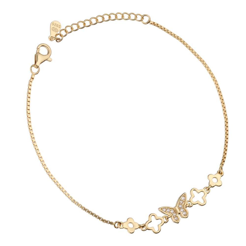 Srebrna narukvica s privjeskom leptira i cvijeta