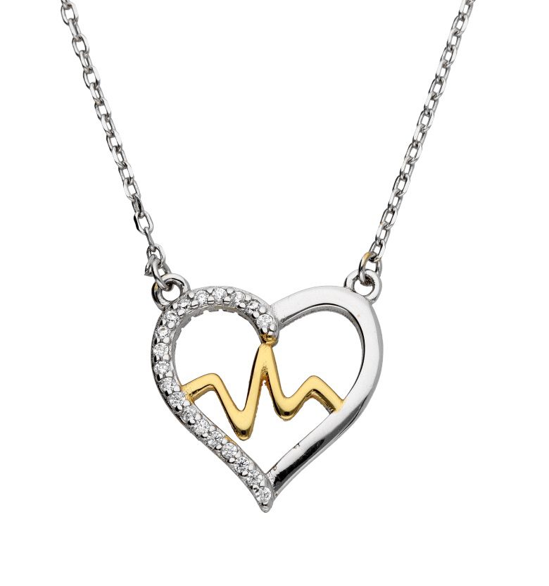 Srebrna ogrlica srce i puls ” heart beat” djelomično pozlaćena 14 karatnim zlatom