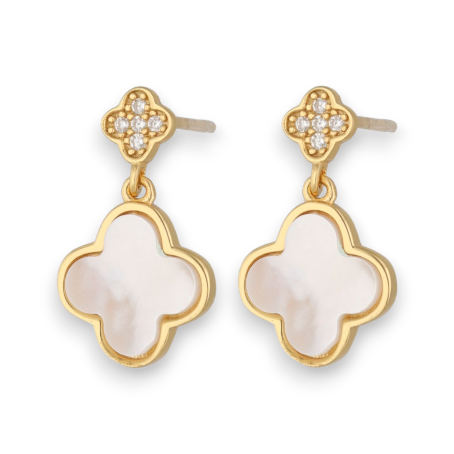 Naušnice su presvučene 18k zlatom i ukrašene cirkonima i školjkom.