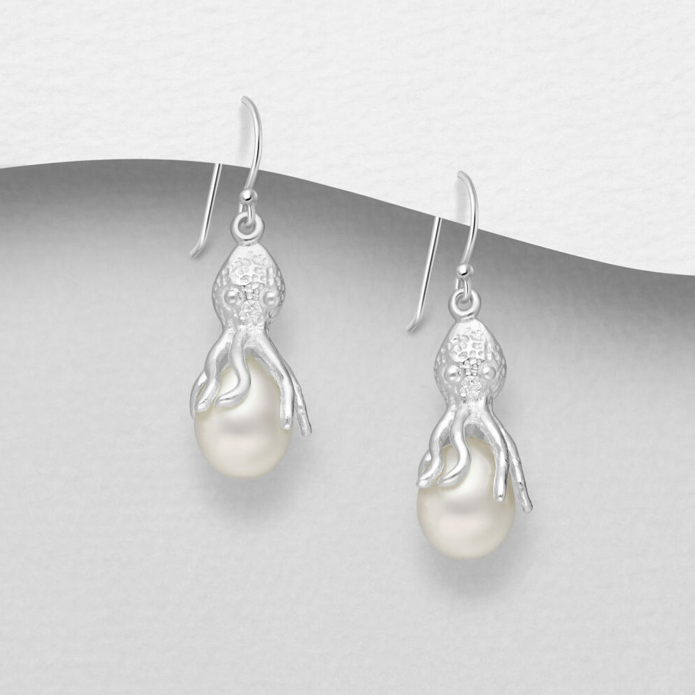 Srebrne naušnice hobotnice sa slatkovodnim biserima