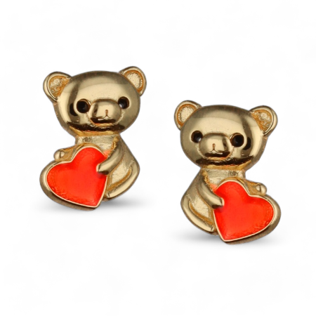 Srebrne naušnice medvjedić i srce, naušnice su presvučene zlatom.