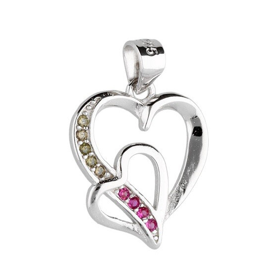 Srebrni privjesak srce ukrašeno raznobojnim cirkonima