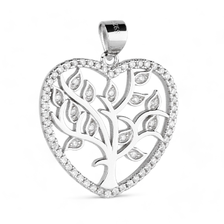 Srebrni privjesak srce i drvo.