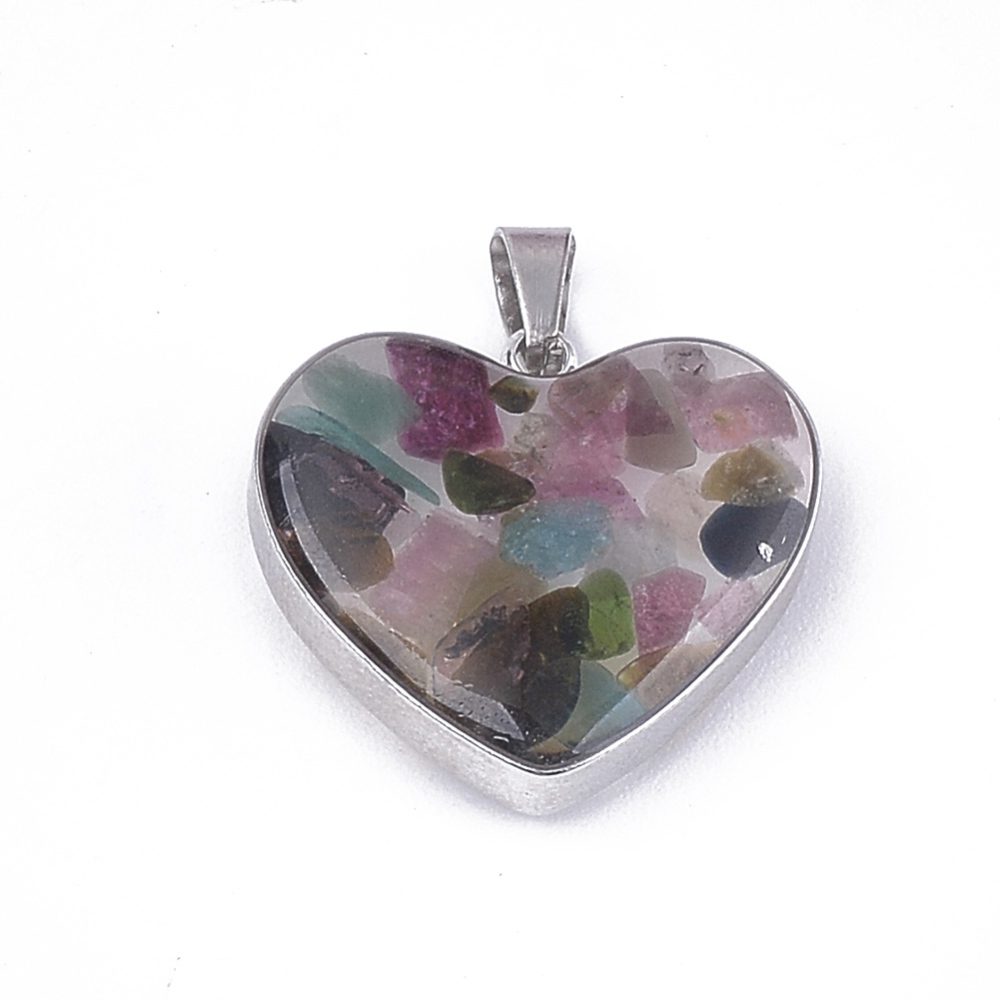 Turmalin privjesak – komadići turmalina u staklenom i čeličnom srcu